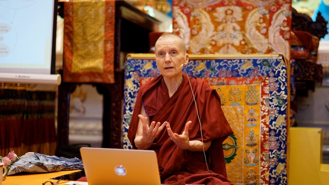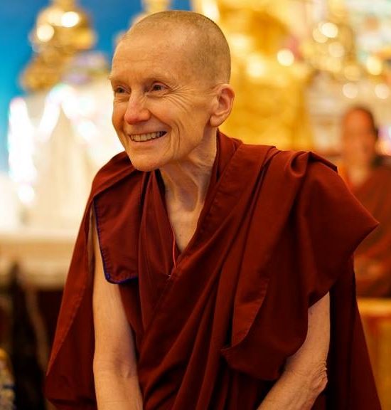 At her teachers’ request, she began teaching in 1980 and has since taught in numerous countries around the world, occasionally taking time off for personal retreats. She served as resident teacher in Buddha House in Australia, Amitabha Buddhist Centre in Singapore, and the FPMT centre in Denmark, and completed the FPMT Masters Program at Istituto Lama Tzong Khapa in Italy (2008–2013). Since 2017, Ven. Sangye Khadro has been a teacher and resident at Sravasti Abbey in Washington State.